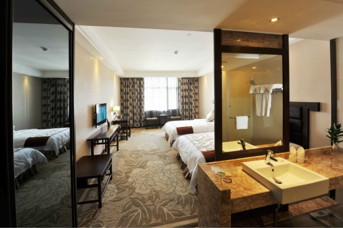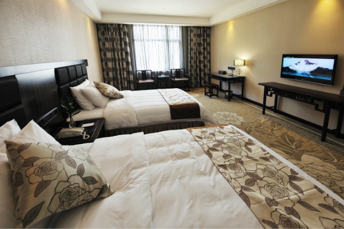 房內(nèi)設(shè)施齊全,使用中央空調(diào),37寸3D液晶電視,客房免費(fèi)提供不計(jì)時國內(nèi)長途電話,免費(fèi)光纖網(wǎng)絡(luò)接入,紅木家具,保險箱、冰箱。酒店餐廳設(shè)有豪華餐飲包房11間。