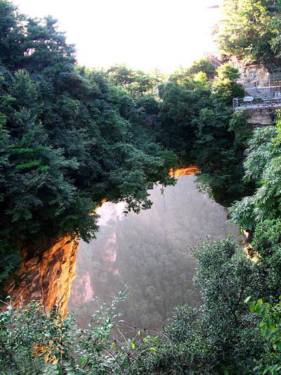 | 上午 | 酒店出發(fā)赴索溪峪門票站進入景區(qū),可乘天下第一梯—百龍電梯(72元/人)到達【袁家界景區(qū)】: 袁家界是張家界的核心景觀和精品游覽線,袁家界風景以雄、奇、險、峻著稱,在十多華里的環(huán)山游道上,沿途景色美不勝數(shù),其中可觀賞到:電影《阿凡達》中“哈利路亞山”原型“乾坤柱”、迄今為止發(fā)現(xiàn)落差最高的天然石橋—天下第一橋、九天玄梯、八卦圖、猿人望月、拜仙臺等景點。 |