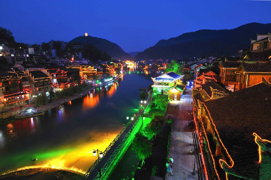 | 下午 | 下午土司城門口集合(晚班16:00-17:00分集合出發(fā));BUS赴鳳凰(途中經(jīng)過懸掛在瀑布上的千年古鎮(zhèn)—【芙蓉鎮(zhèn)】(門票自理120元/人),安排晚餐。抵達(dá)鳳凰后客人自行游鳳凰夜景、漫步美麗的沱江邊。兩岸燈火闌珊,古城清幽而絢麗讓人留念往返。![]() |